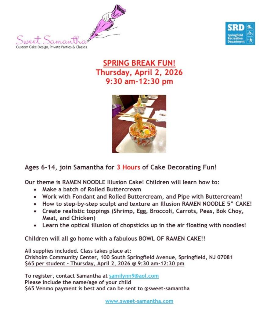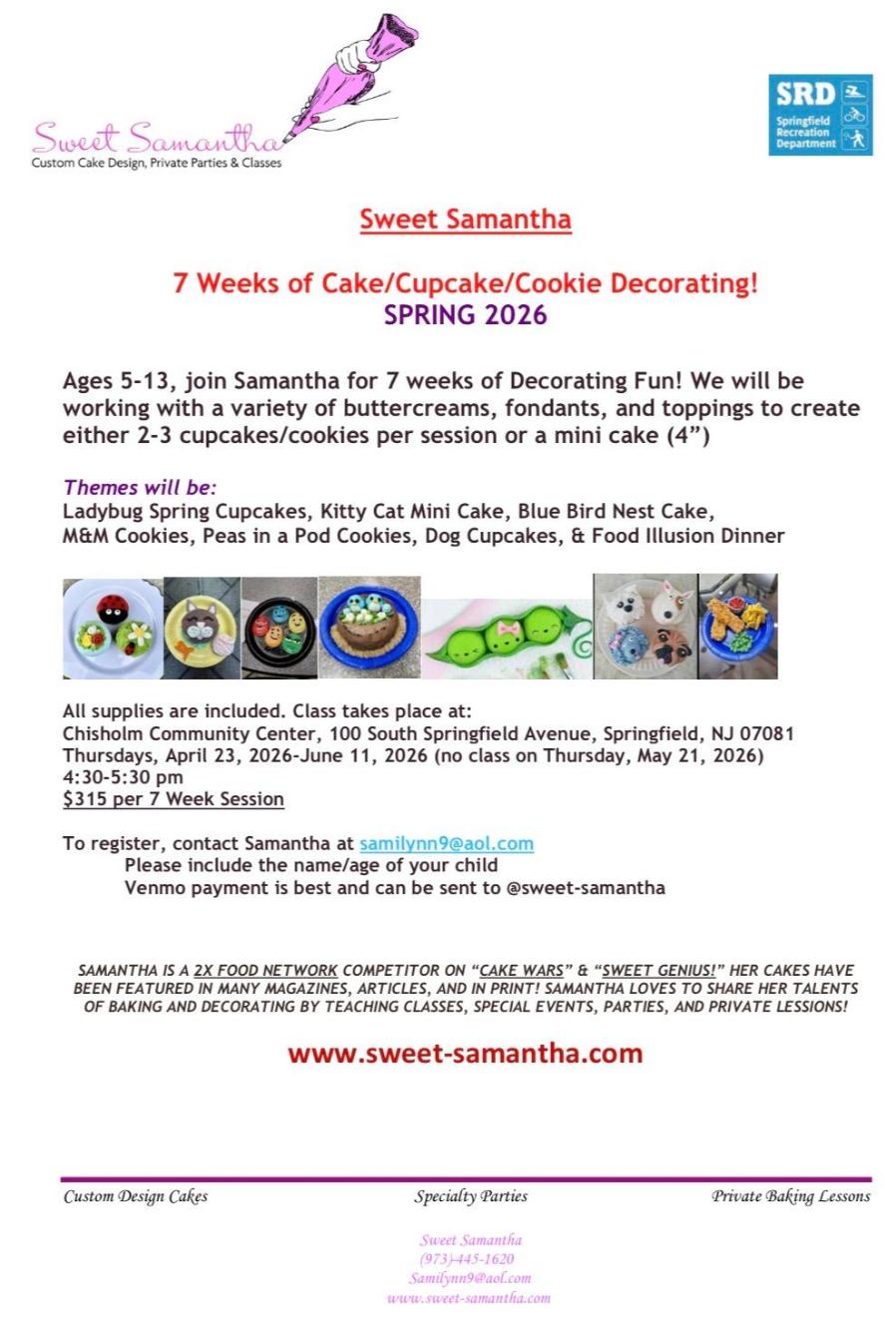 All private lessons take place as Samantha's Springfield NJ kitchen location and are scheduled on availability -